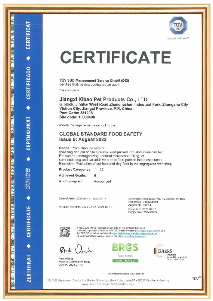 【喜报】江西喜保顺利取得BRC食品安全全球标准体系认证证书!!!