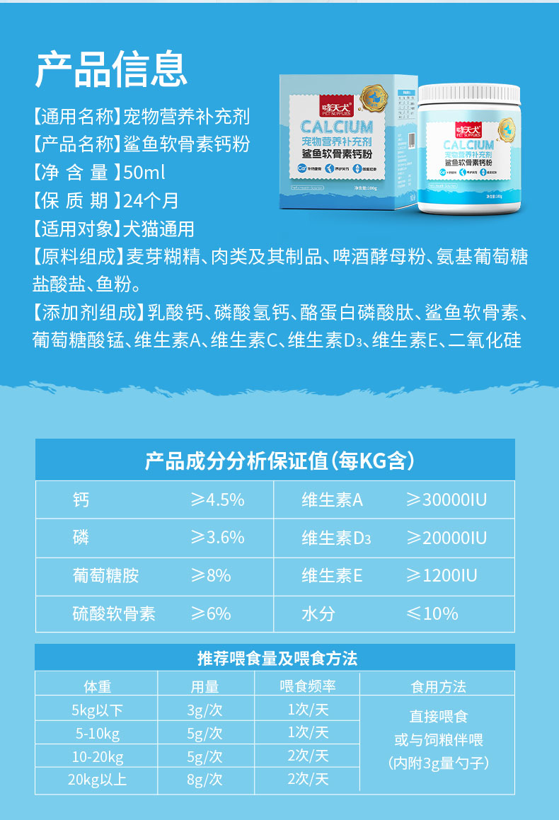 哮天犬鲨鱼软骨素钙粉